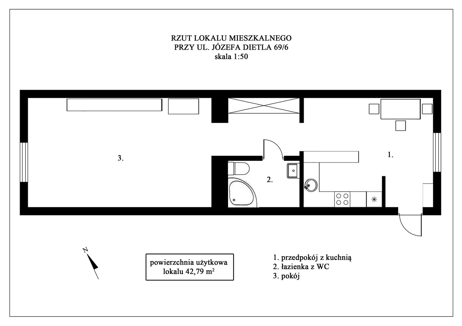 2. LOKAL MIESZKALNY NR 6 w budynku wielomieszkaniowym przy UL. JÓZEFA DIETLA 69 W KRAKOWIE, o pow. użytkowej 42,79 m2 (objęty księgą wieczystą nr KR1P/00203254/3) wraz z udziałem 4279/89297 części w nieruchomości wspólnej stanowiącej grunt oznaczony jako działka ewid. nr 64 o pow. 0,0302 ha położona w jednostce ewid. Śródmieście, obręb S-11 oraz części budynku i urządzeń, które nie służą wyłącznie do użytku właścicieli lokali.