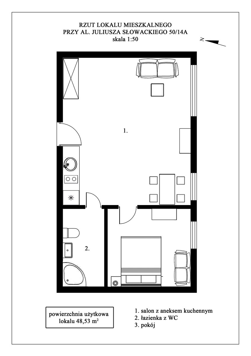 3. LOKAL MIESZKALNY NR 14A w budynku wielomieszkaniowym przy AL. JULIUSZA SŁOWACKIEGO 50 W KRAKOWIE, o pow. użytkowej 48,53 m2 (objęty księgą wieczystą nr KR1P/00548695/6) wraz z udziałem 39/1000 części w nieruchomości wspólnej stanowiącej grunt oznaczony jako działka ewid. nr 302/1 o pow. 0,0366 ha położona w jednostce ewid. Krowodrza, obręb K-46 oraz części budynku i urządzeń, które nie służą wyłącznie do użytku właścicieli lokali.