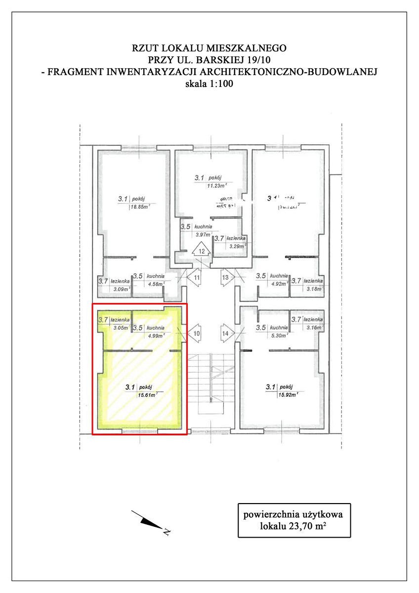 6. LOKAL MIESZKALNY NR 10 w budynku wielomieszkaniowym przy UL. BARSKIEJ 19 W KRAKOWIE, o pow. użytkowej 23,70 m2 z pomieszczeniem przynależnym – piwnicą o pow. 2,40 m2 (objęty księgą wieczystą nr KR1P/00209952/8) wraz z udziałem 261/6690 części w nieruchomości wspólnej stanowiącej grunt oznaczony jako działka ewid. nr 320/1 o pow. 0,0340 ha położona w jednostce ewid. Podgórze, obręb P-10 oraz części budynku i urządzeń, które nie służą wyłącznie do użytku właścicieli lokali.