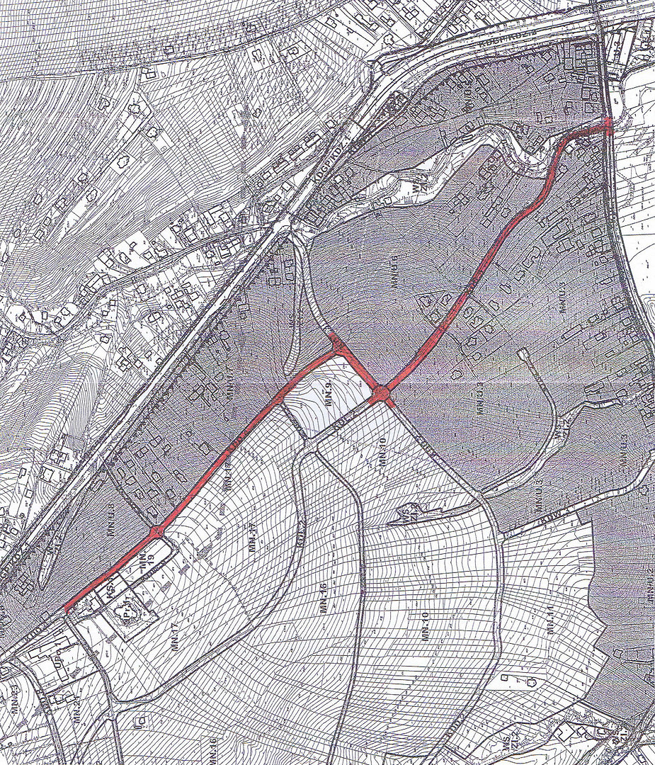 - Jezdnię o nawierzchni asfaltowej ze ściekiem z kostki brukowej o szerokości podstawowej 6,0 m na nowych warstwach konstrukcyjnych podbudowy z kruszywa mineralnego i warstwie ulepszonego podłoża z gruntu stabilizowanego spoiwem hydraulicznym, z nasypami i skarpami.
