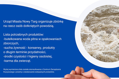 Urząd Miasta Nowy Targ organizuje zbiórkę na rzecz osób dotkniętych powodzią.